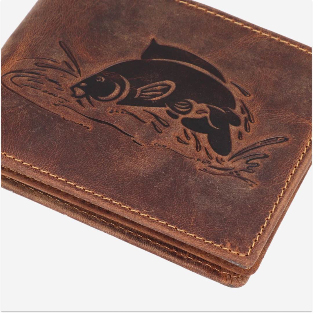 The leather wallet with a carp motif is perfect for personal use or as a special gift for those who appreciate quality and classic design.