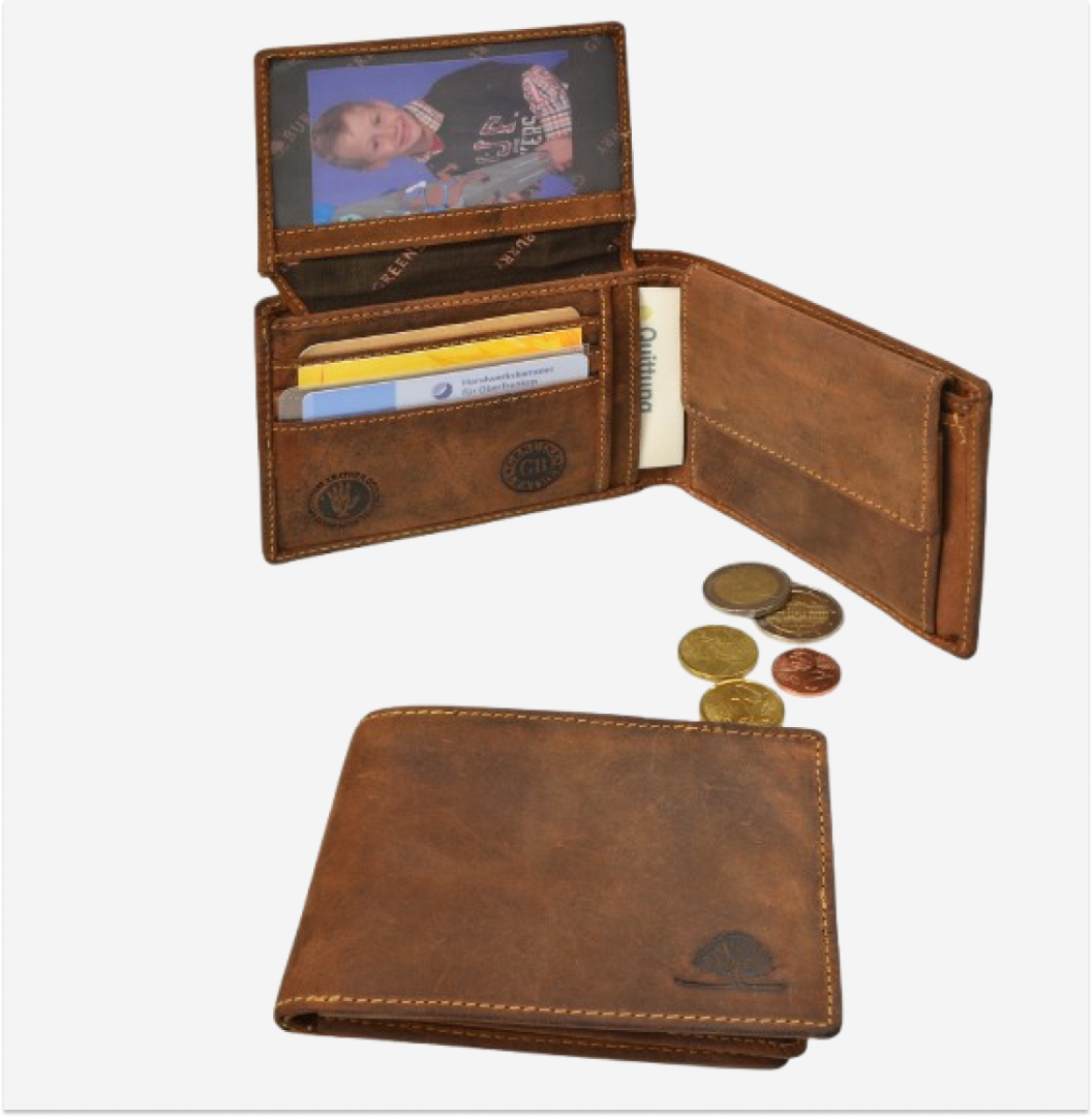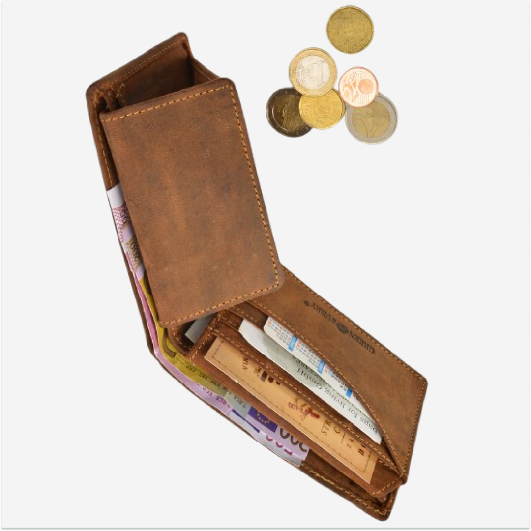 The leather wallet with RFID protection and compartments for banknotes and coins is perfect for personal use or as a special gift for those who appreciate quality and classic design.