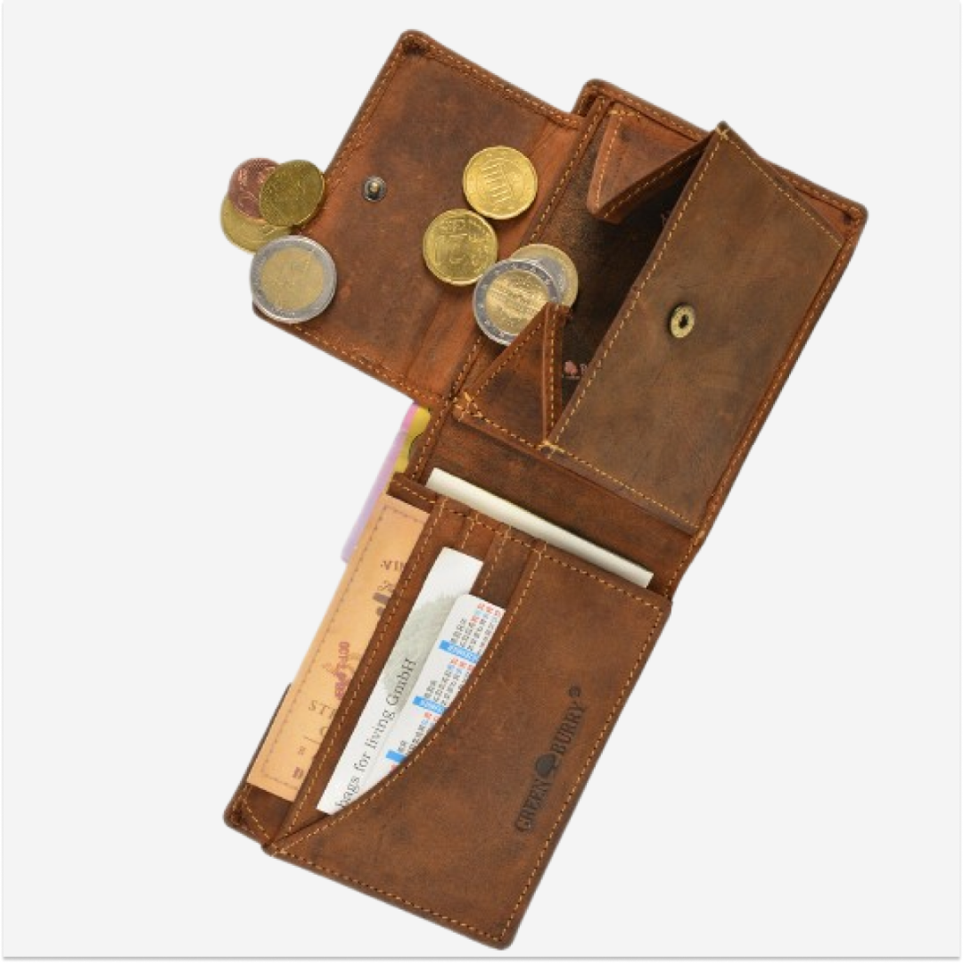 Multiple Compartments: Ensures efficient organization of cash, cards, and other small valuables, including compartments for banknotes and coins.