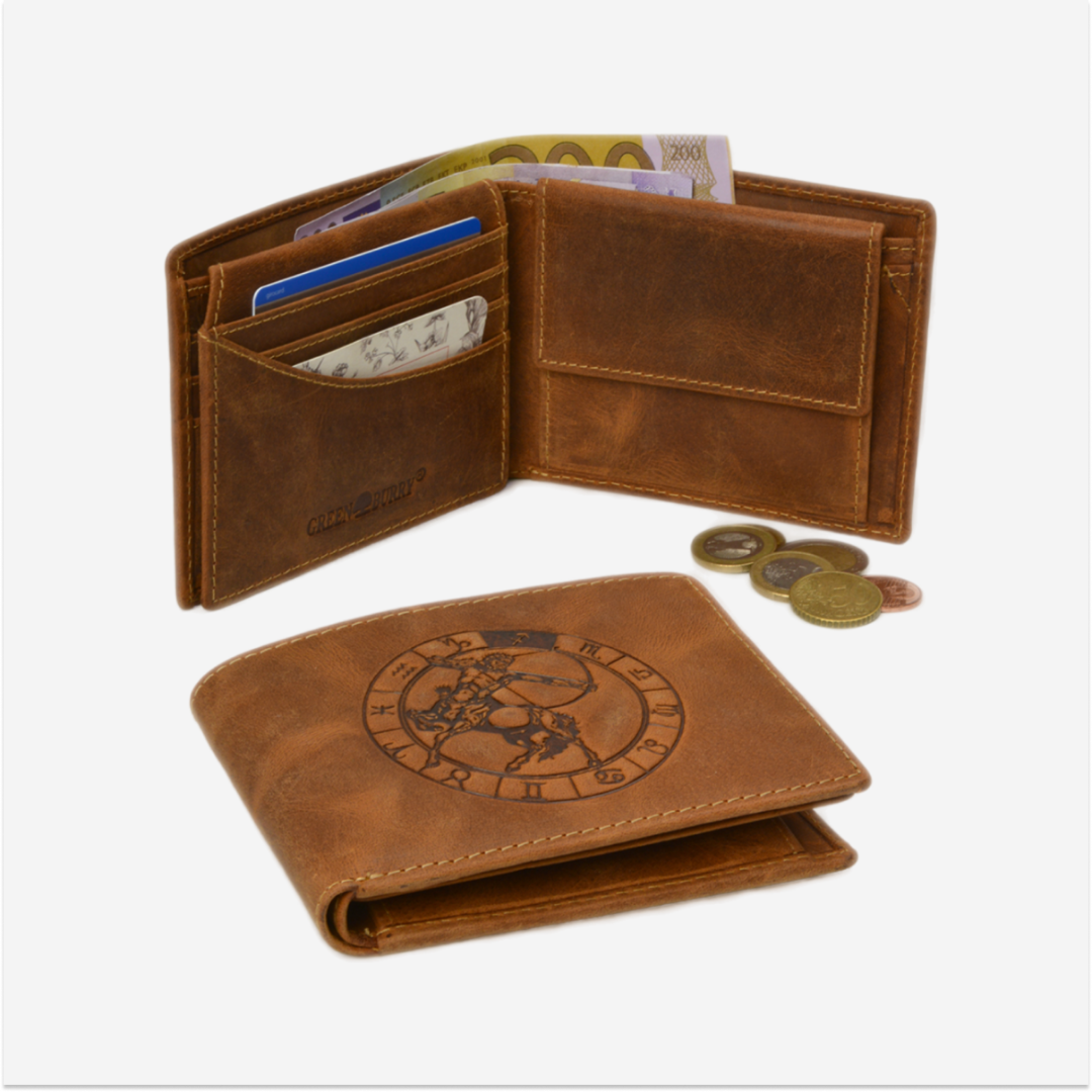 The leather wallet with a sagittarius motif is perfect for personal use or as a special gift for those who appreciate quality and classic design.
