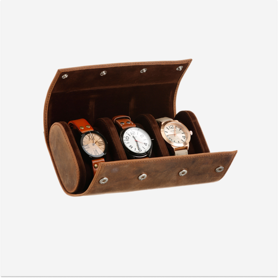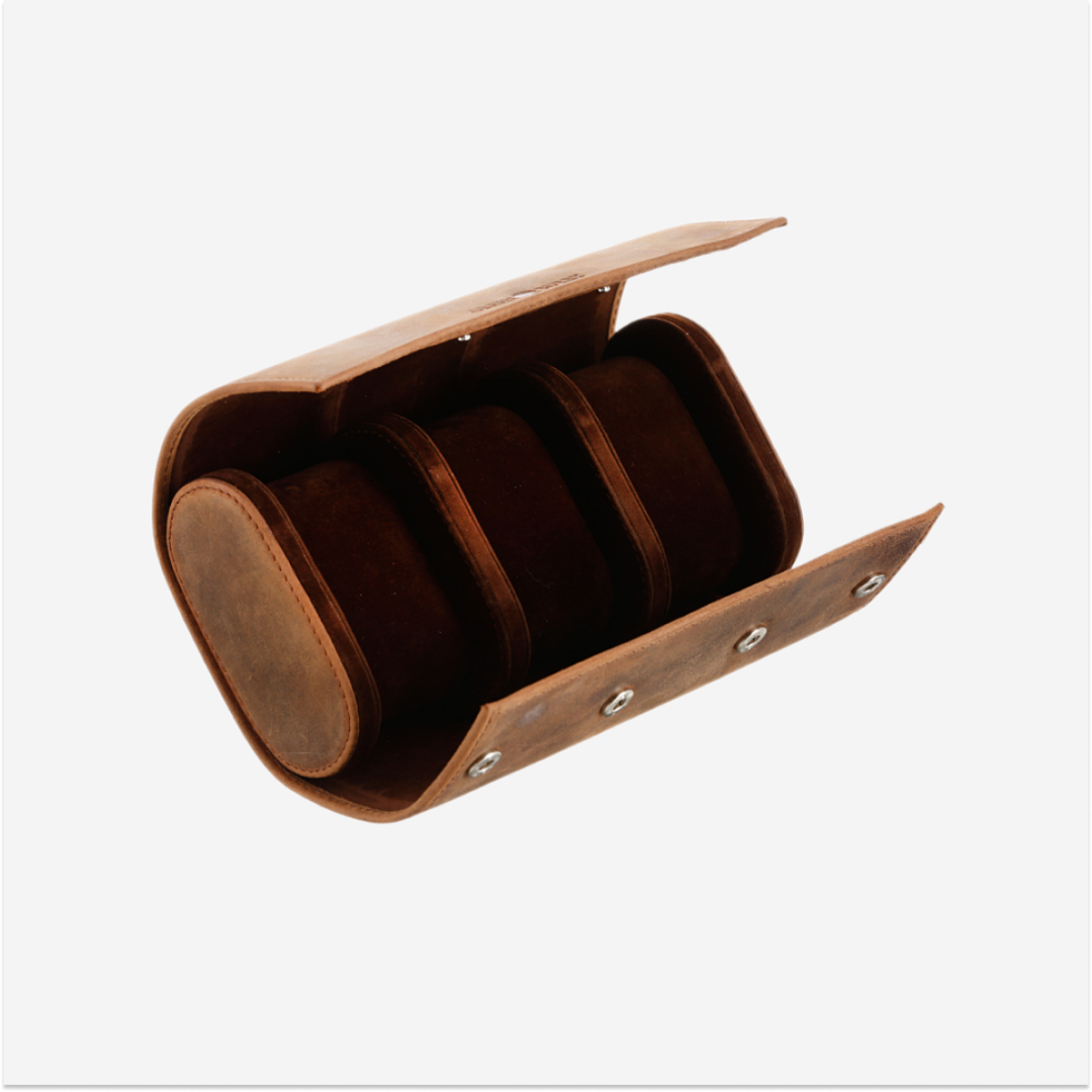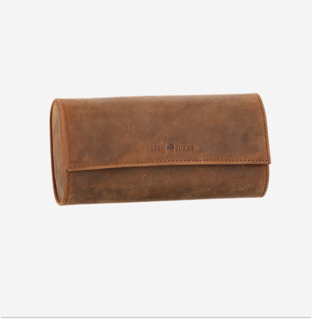The Greenburry watch case is crafted from high-quality leather and designed to hold three watches. This model is available in an elegant antique brown shade. The case is designed to be practical and durable, making it ideal for daily use or travel. The main compartment is padded, providing optimal protection for your watches. The case features individual holders for each watch, ensuring they are well-organized and protected from scratches or other damage. The leather used for this case is of superior quality, offering both durability and a sophisticated appearance. The material is easy to maintain and resistant to wear, ensuring long-lasting use. The Greenburry watch case represents an excellent combination of functionality and style, perfect for those who appreciate high-quality accessories with a classic design.