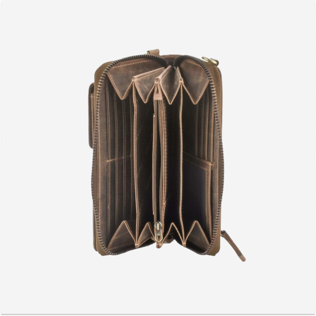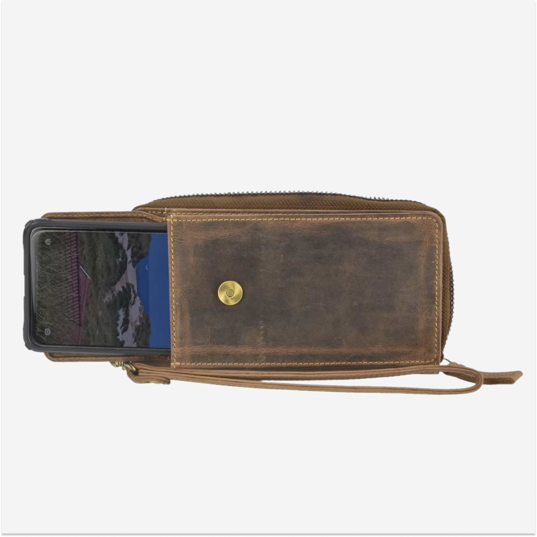 Husa/portofel pentru telefon Greenburry este confecționată din piele de înaltă calitate și vine cu o funcție suplimentară de portofel. Modelul "Vintage" este disponibil într-o nuanță antichizată de maro, conferindu-i un aspect clasic și elegant. Această husă este proiectată pentru a fi practică și durabilă, ideală pentru utilizarea zilnică, fie că mergeți la cumpărături, la serviciu sau în călătorii. Compartimentul principal pentru telefon este căptușit și se închide cu un fermoar, asigurând astfel securitatea dispozitivului dvs. În plus, husa dispune de un compartiment suplimentar care funcționează ca un portofel, oferind spațiu pentru păstrarea cardurilor, banilor și a altor obiecte mici. Curea de umăr este reglabilă, permițându-vă să ajustați lungimea pentru un confort maxim. Pielea utilizată pentru această husă este de calitate superioară, oferind atât durabilitate, cât și un aspect sofisticat. Materialul este ușor de întreținut și rezistent la uzură, asigurând o utilizare de lungă durată. Husa pentru telefon "Vintage" de la Greenburry reprezintă o combinație excelentă între funcționalitate și stil, ideală pentru cei care apreciază accesoriile de înaltă calitate și cu un design clasic.