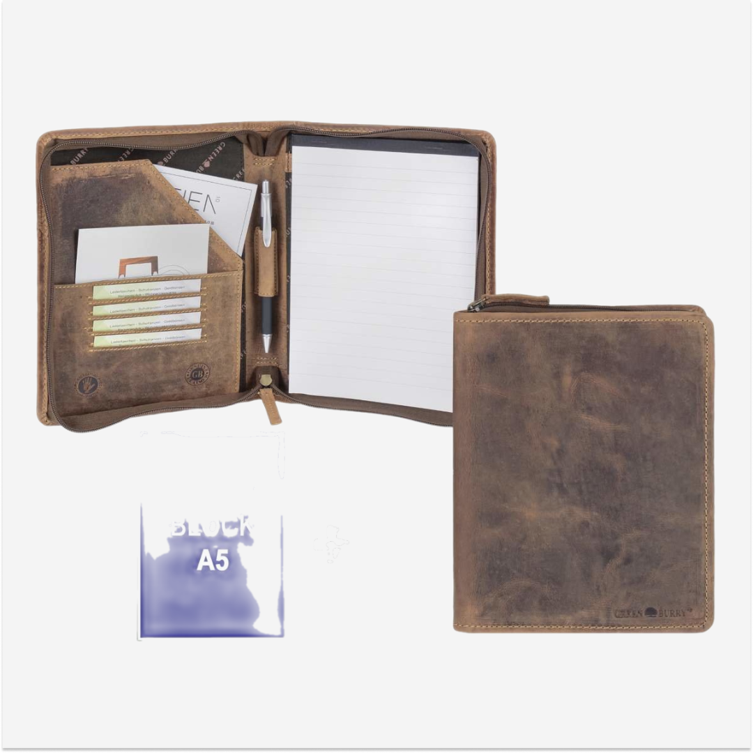 Mapa din piele A5 cu fermoar în stil "Vintage" și culoarea maro antichizat (numărul de model 1633-25-S01) este un accesoriu practic și elegant pentru utilizarea zilnică.