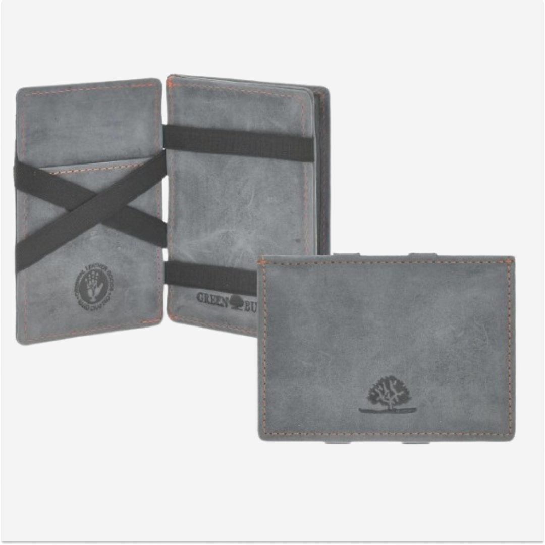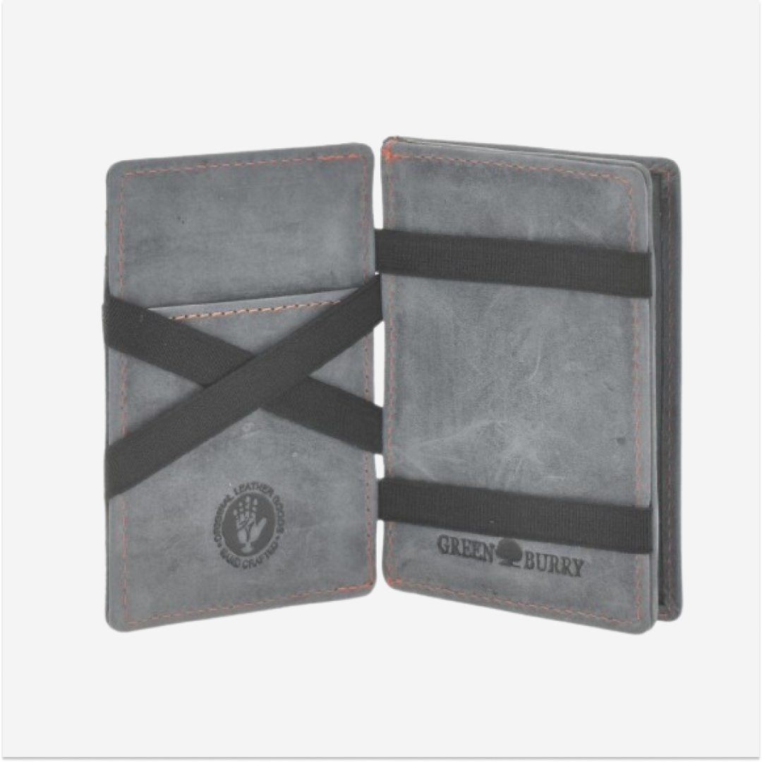 - Caracteristică specială: Dispune de un sistem special de pliere în care bancnotele sau cardurile sunt fixate cu benzi elastice. Prin închiderea portofelului, conținutul este ținut în siguranță.