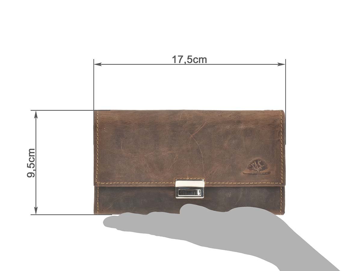 Portofel din piele, cu dimensiunile de 17x9 cm, modelul "Vintage" antichizat maro 1785-25, se remarcă prin designul său clasic și nuanța sa de maro antichizat.