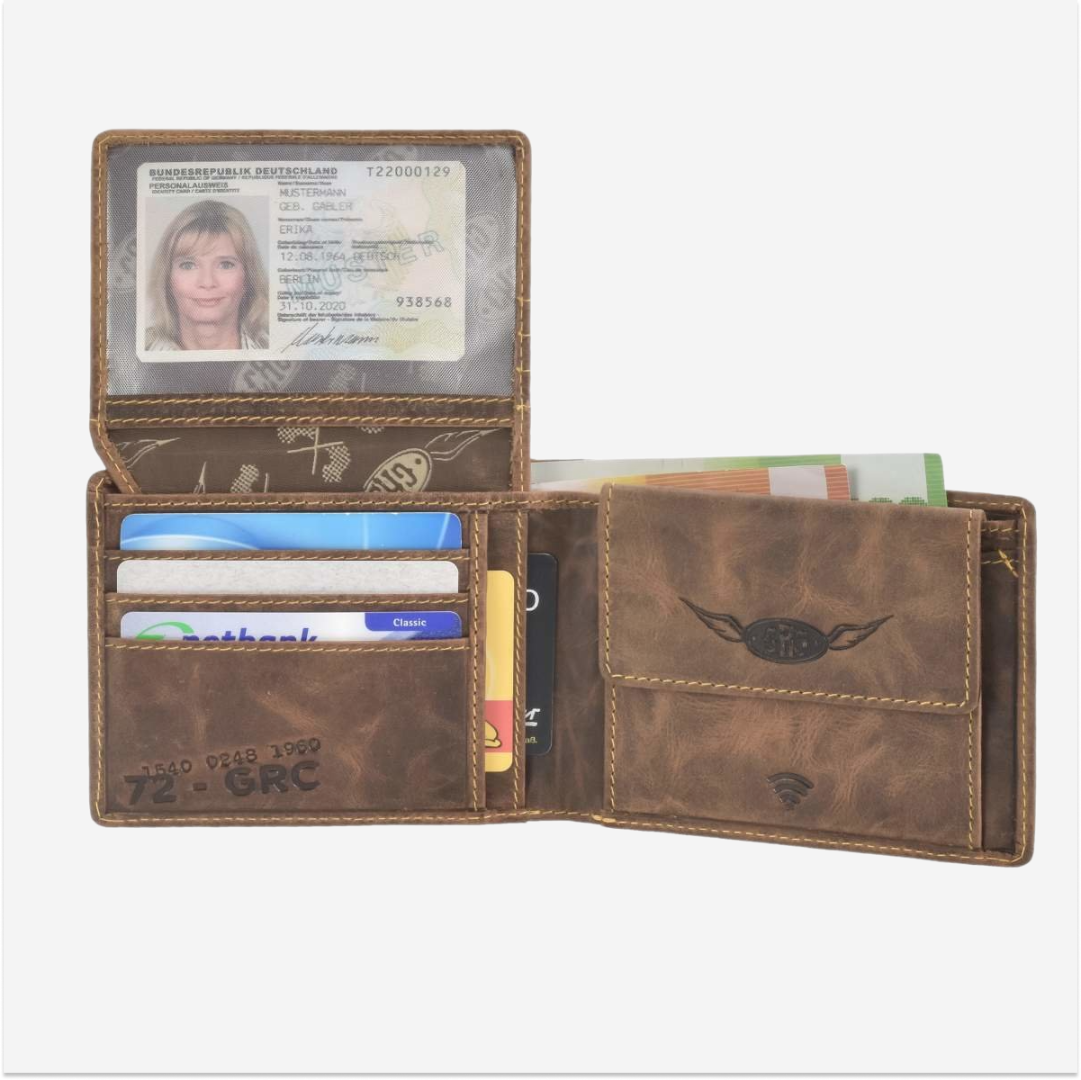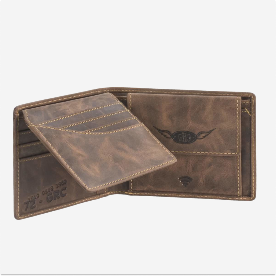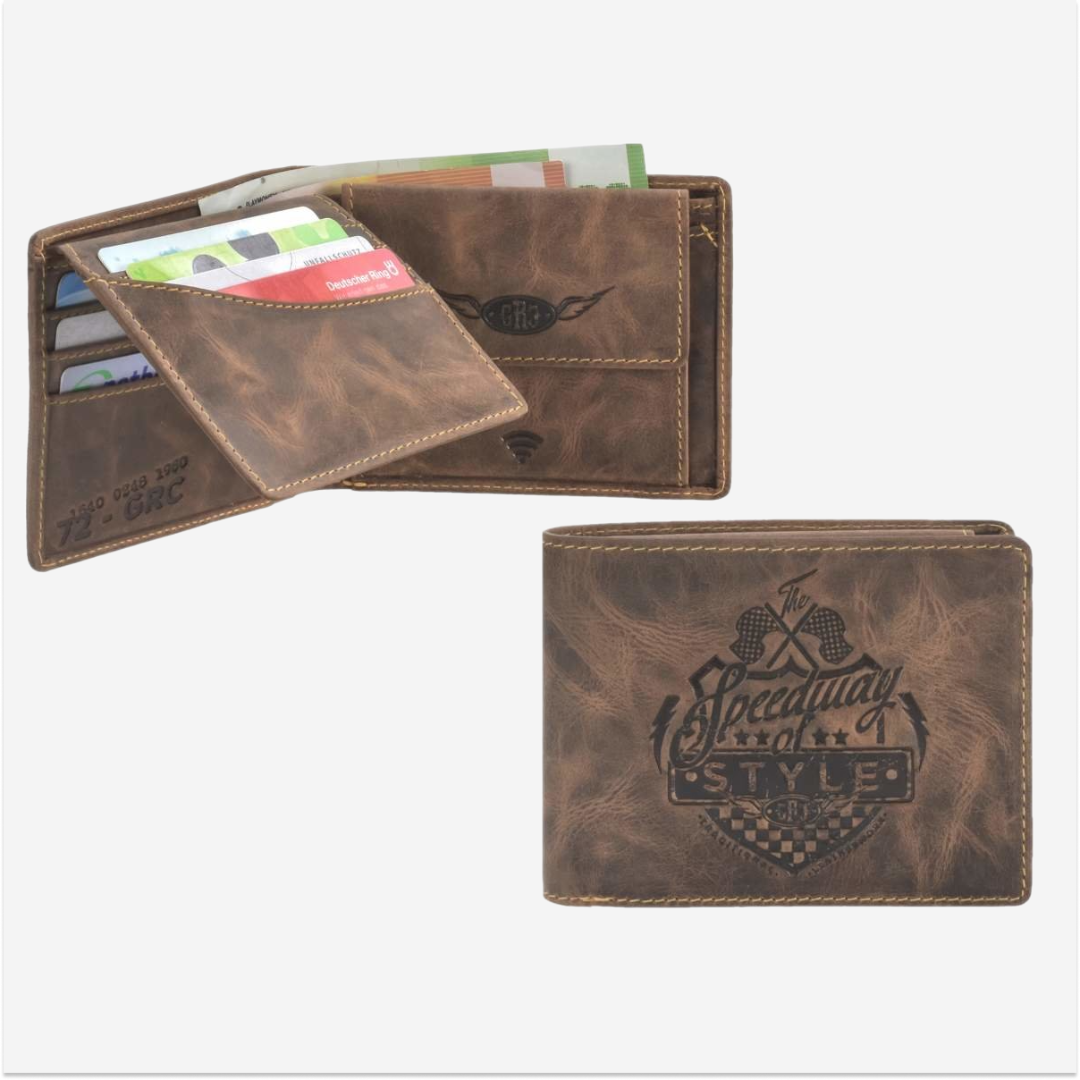 Portofel din piele Daytona "Racing Collection" antikbraun de 12x9 cm este alegerea perfectă pentru cei care apreciază combinația dintre stilul vintage și funcționalitatea modernă, oferind un accesoriu elegant și practic pentru viața de zi cu zi.