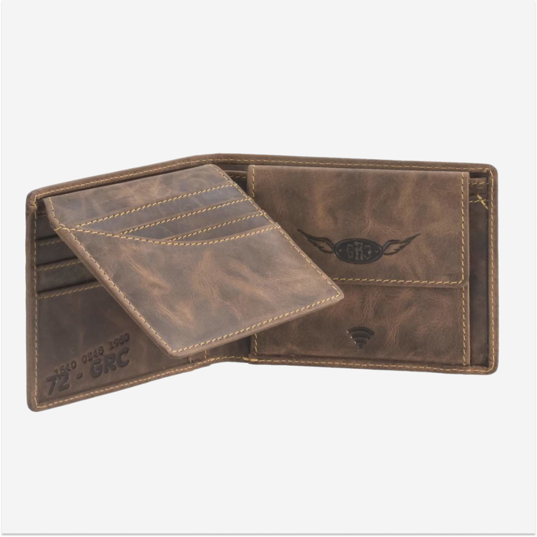 Portofel din piele Phoenix "Racing Collection" antikbraun de 12x9 cm este alegerea perfectă pentru cei care apreciază combinația dintre stilul vintage și funcționalitatea modernă, oferind un accesoriu elegant și practic pentru viața de zi cu zi.