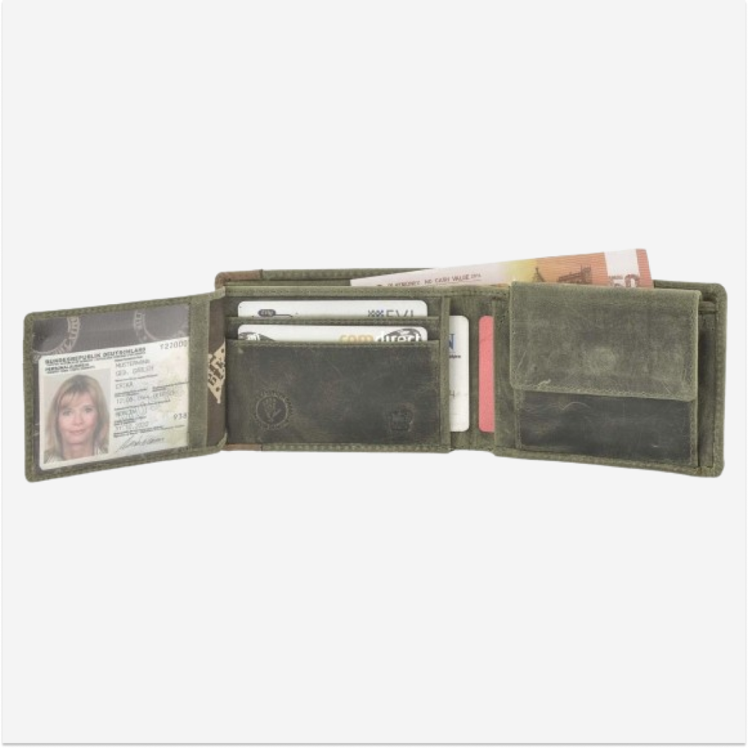Portofel Greenburry elegant și practic de la Billy the Kid este confecționat din piele de înaltă calitate și oferă protecție RFID pentru a vă păstra cardurile în siguranță împotriva furtului de date. Cu o dimensiune compactă de 12 cm, acesta este perfect pentru a fi purtat în buzunar sau în geantă. Designul său robust și stilul clasic îl fac o alegere excelentă pentru cei care apreciază atât funcționalitatea, cât și estetica.