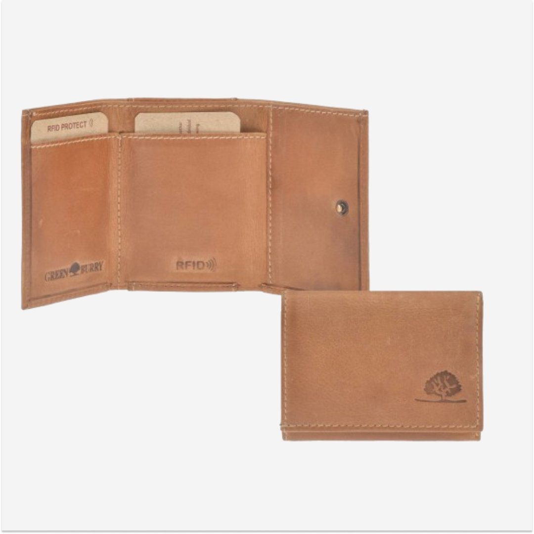 Portofel Greenburry din piele 10x7cm mic cu protecție RFID "Tornado" în culoarea cognac brown