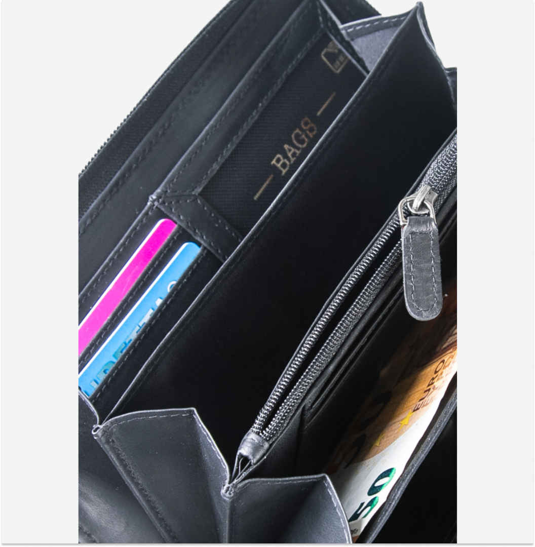 Compartimente: Portofel dispune de multiple compartimente interioare pentru a stoca bancnote, cărți de credit, carduri de vizită și alte obiecte personale importante. De asemenea, poate avea un buzunar exterior pentru monede, care se închide cu fermoar pentru siguranță.