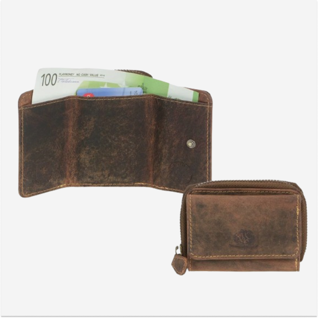 Portofel din piele cu dimensiunile de 10x7 cm, cu compartiment pentru monede, în stil „Vintage” și culoarea antikbraun (numărul de model 1668-25), este un accesoriu practic și elegant pentru utilizarea zilnică.