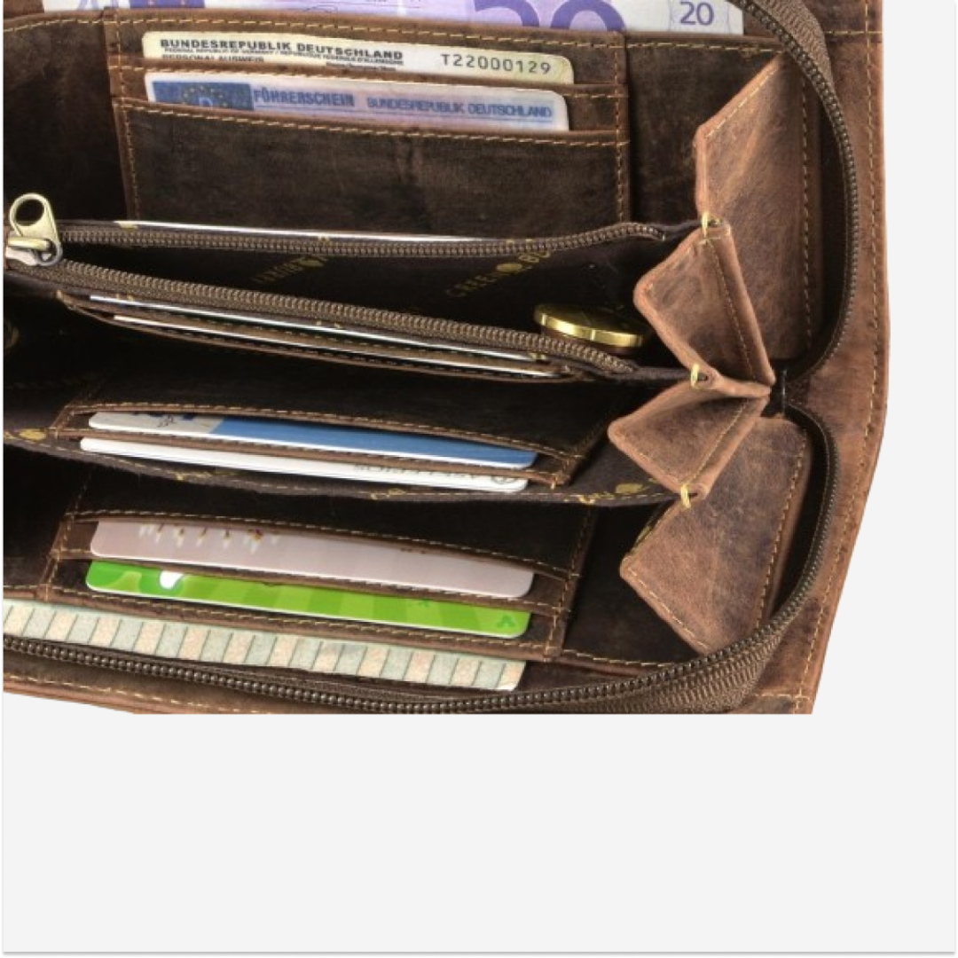 - Compartimente: Dispune de multiple compartimente pentru carduri, bancnote și monede, oferind astfel organizare optimă.