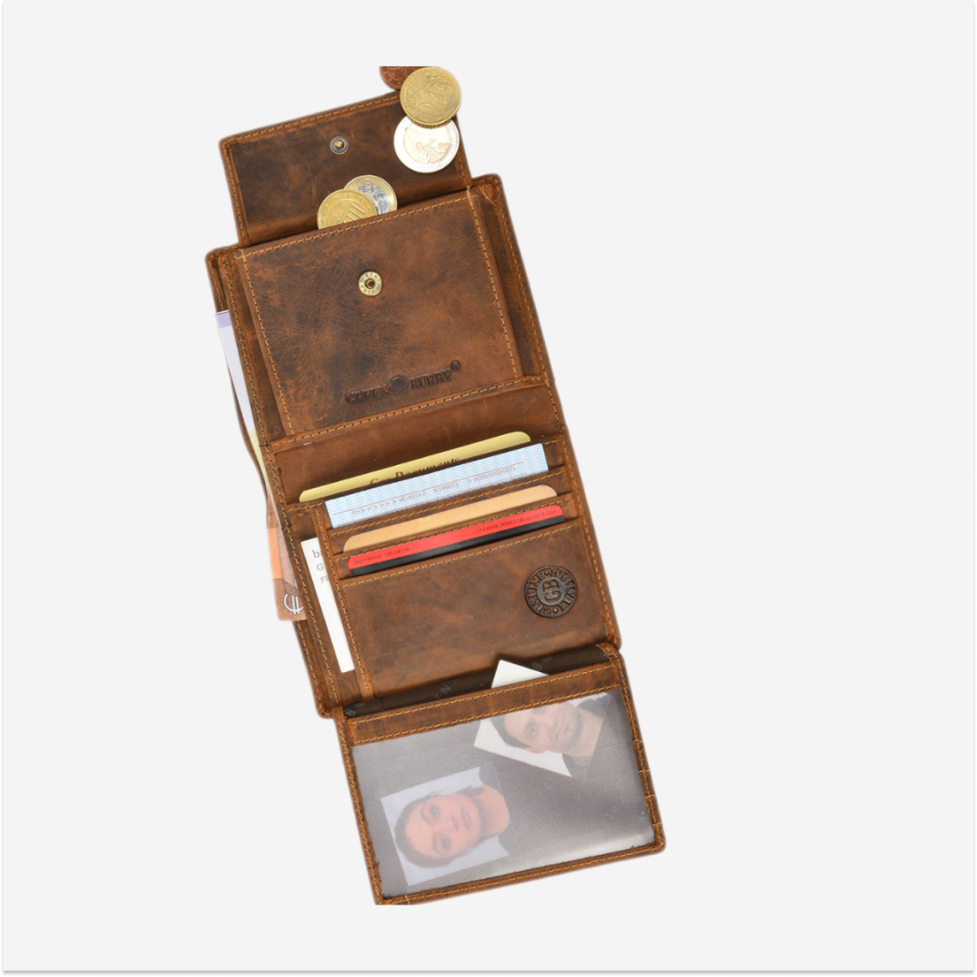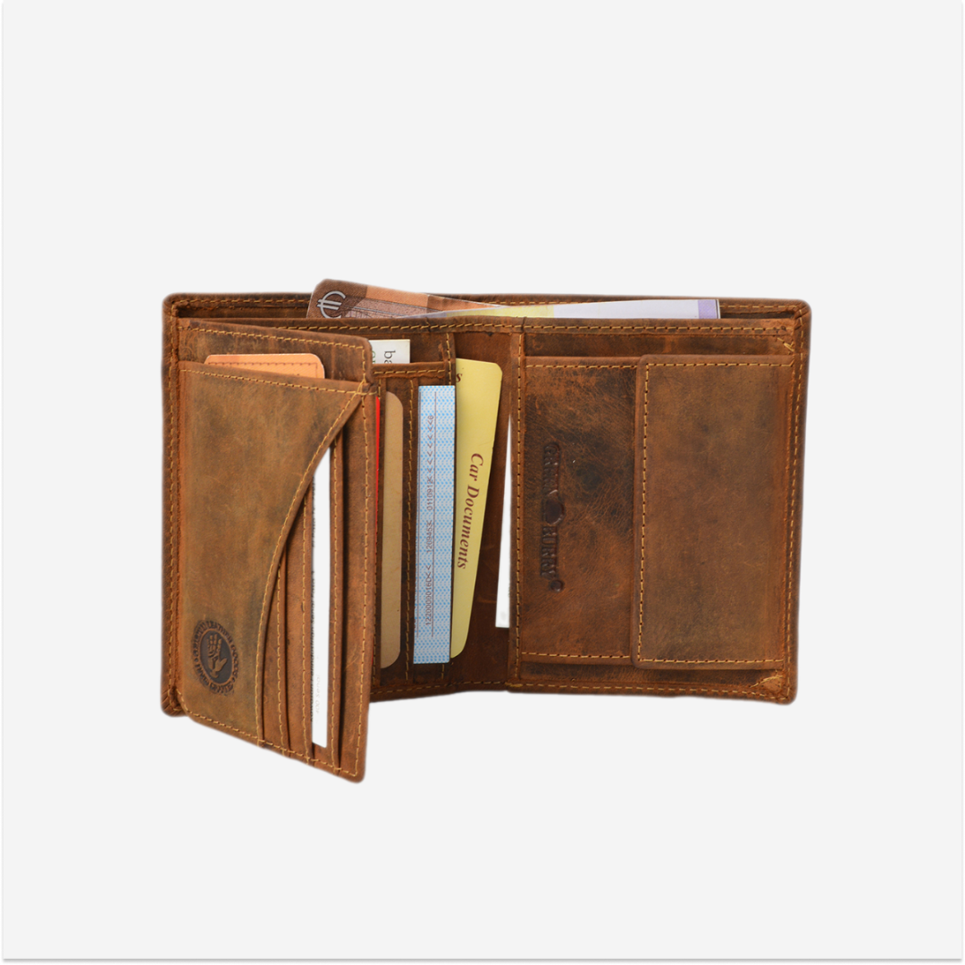 Portofel este realizat din piele de înaltă calitate, având un design vintage cu motiv de cerb regal și nuanță de maro antichizat. Este ideal pentru cei care apreciază un accesoriu practic și elegant, cu tematică de vânătoare.