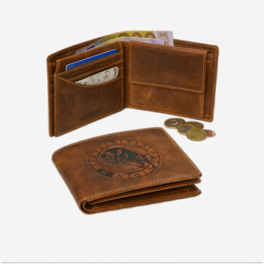 Portofel din piele cu motiv de taur este perfect pentru uz personal sau ca un cadou special pentru cei care apreciază calitatea și designul clasic.