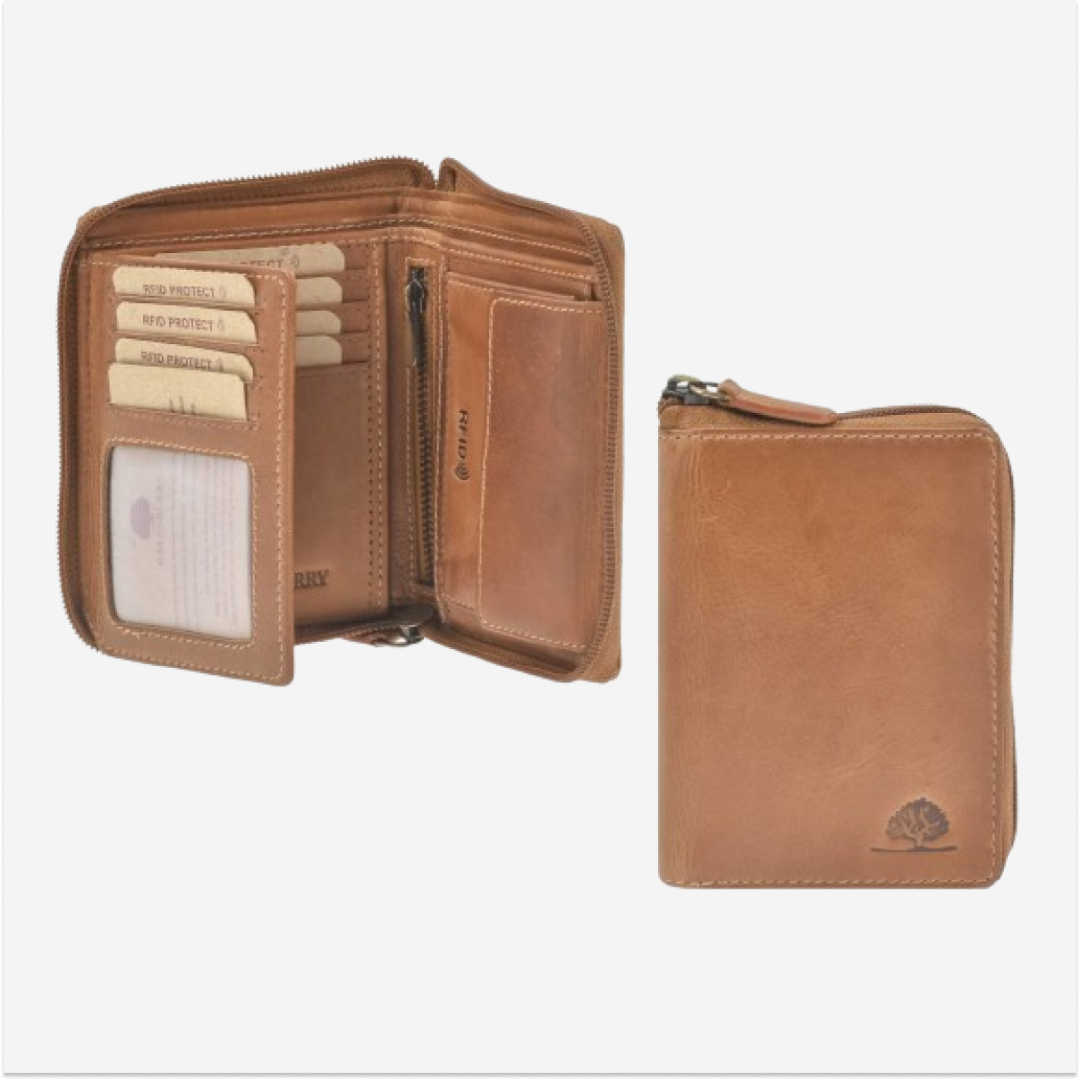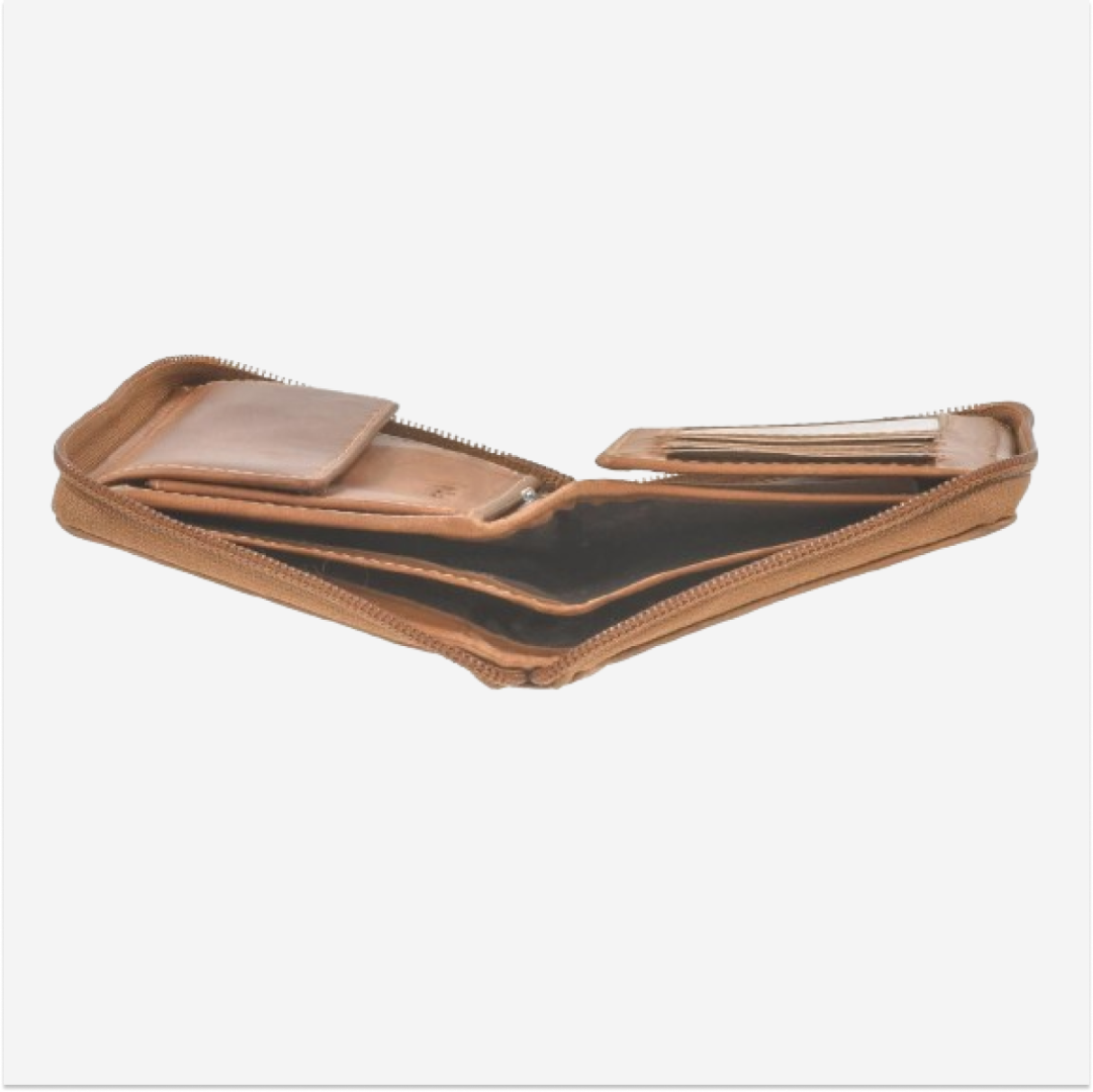 Portofel din piele 10x13cm cu fermoar "Tornado" în culoarea maro închis